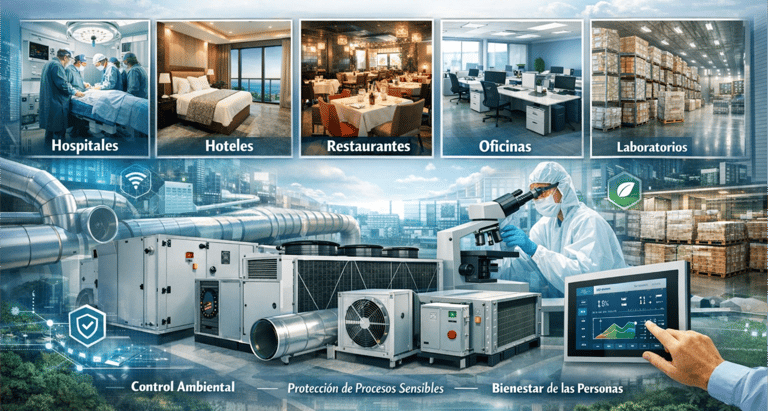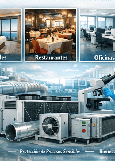 Diseñar, fabricar y suministrar soluciones integrales de climatización (HVAC) y equipos especializados de la mas alta calidad, seguridad y eficiencia energética. Nos dedicamos a satisfacer las demandas críticas de los sectores hospitalario, hotelero, restaurantes, oficinas, laboratorios y bodegas, proporcionando tecnologías innovadoras que garantizan el control ambiental, la protección de procesos sensibles y el bienestar de las personas.
